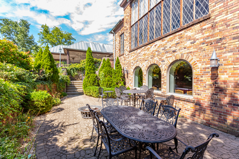 Legends Room: Available for small to mid-sized private parties and meetings. Featuring a wood-burning fireplace, full bar, patio with firepit, large screen TV and full sound system